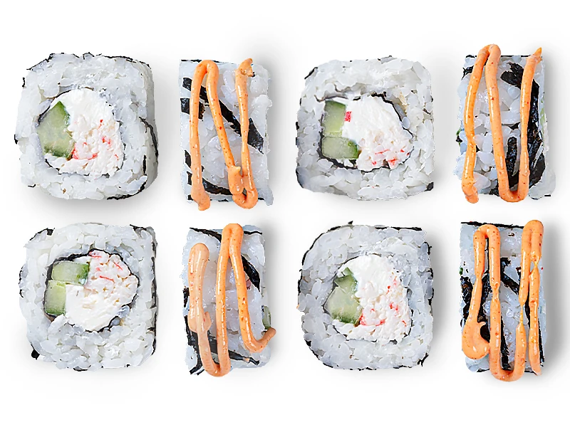 Ролл с крем - крабом, соусом кимчи, сливочным сыром и огурцом
